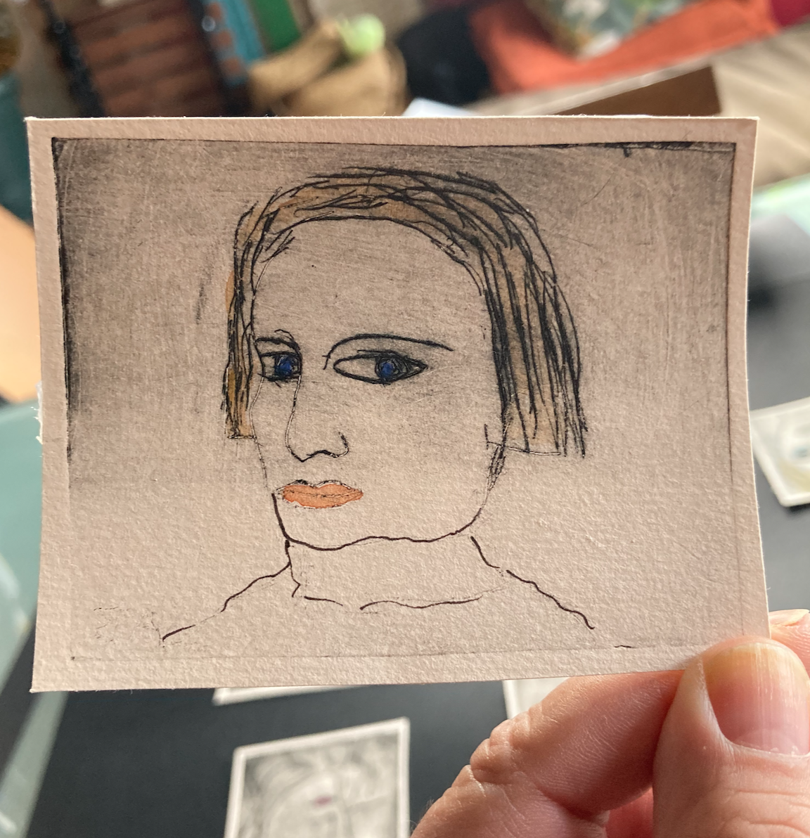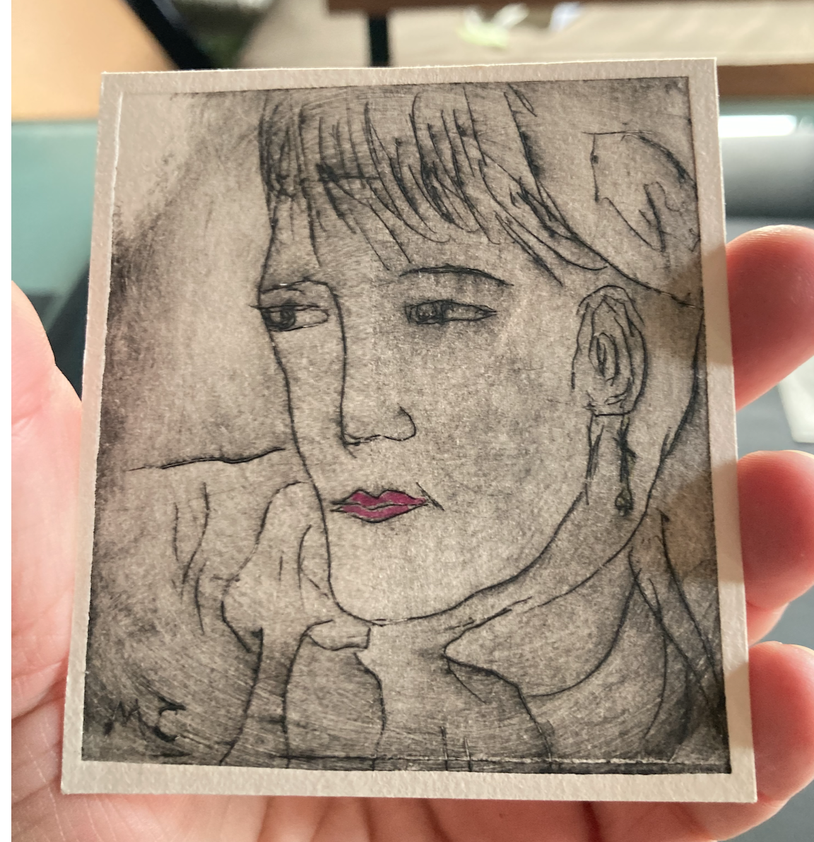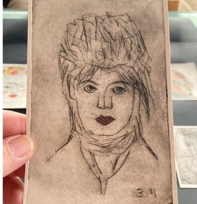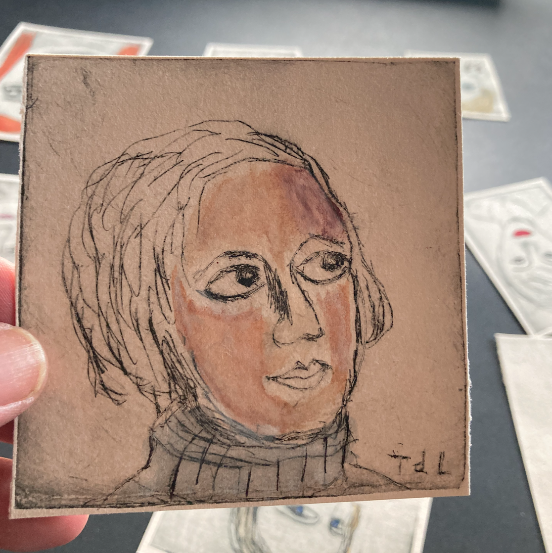 Parallèlement, j'ai entamé une série de dessins et lithos à partir de leurs visages (souvent autoportraits) puis, je l'ai étendue à d'autres artistes, notamment une série sur l'atelier des Dames après avoir visité le musée parisien Jean-Jacques Henner.